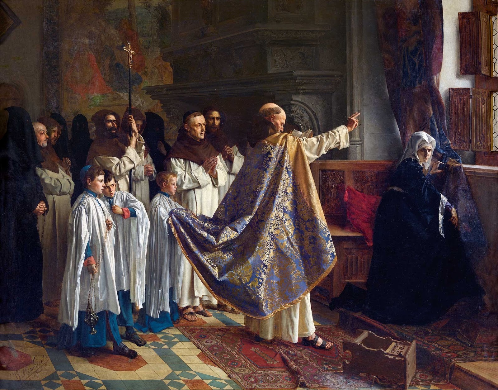Juana ante el féretro que transporta los restos de su esposo desde Miraflores a Granada. Óleo por Francisco Pradilla. 1877. Museo del Prado, Madrid.