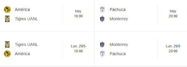 El Tigres contra América se disputará a las 19:00 horas en el Estadio Universitario de San Nicolás de los Garza. Por su parte, el Rayadas ante Pachuca dará inicio a las 21:00 horas en el Estadio BBVA.